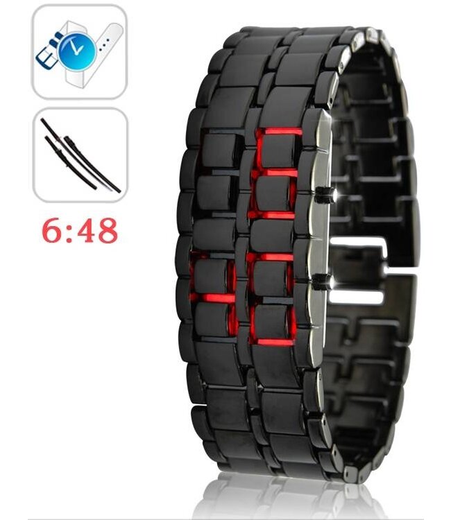 The Iron Samurai, is een lava rood Japans geïnspireerd LED horloge van toekomstige alternatief welke de drager een cool almacht geeft door het herschrijven van de regels van hoe temporele gegevens (tijd) moet worden weergegeven.