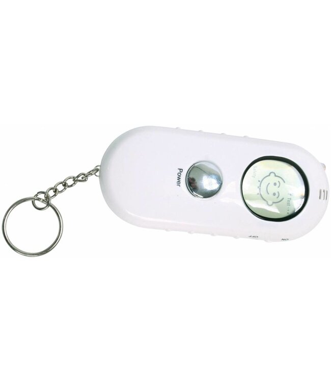 Alcoholtester met LCD display. De tester geeft 3 niveaus weer: Veilig, voorzichtigheid en gevaar. Eenvoudig te gebruiken door de 1-knops bediening en het resultaat is heel snel klaar. Naast de alcohol tester is deze handige sleutelhanger uitgerust met een LED zaklamp.